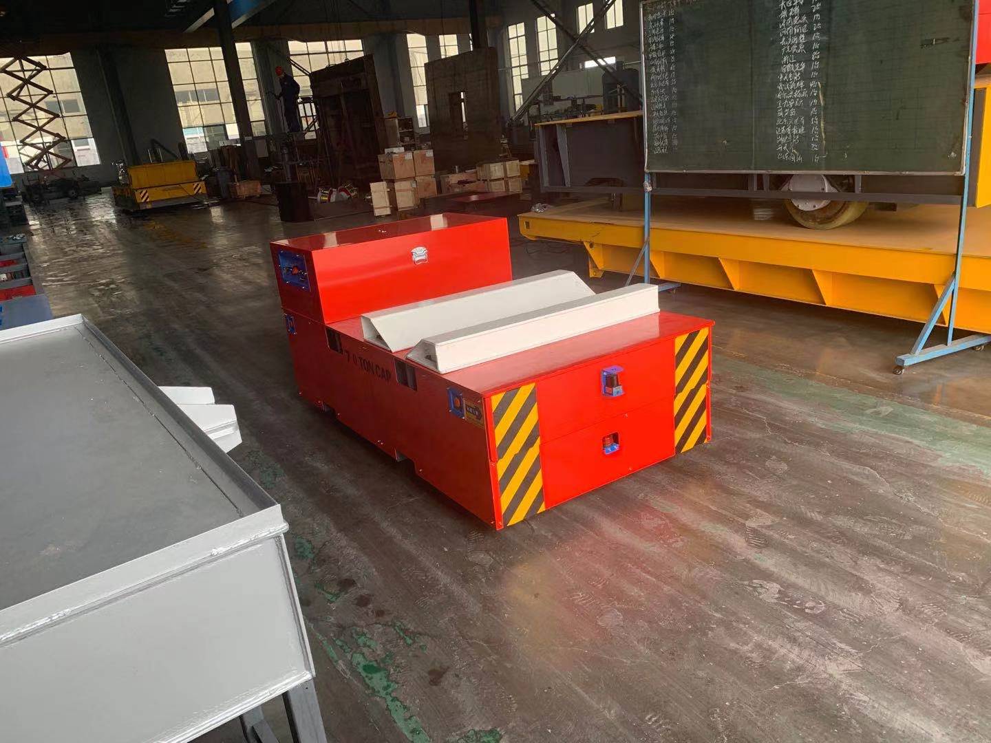 ycw耀彩网该平车可以在轨道横纵移动满足双向运行,而且可以升降,满足装卸工件