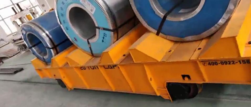 该客户使用现场有很多卷材件,单件体积小重量大,原来用天车完成转运,一是不安全,二是只能单件转运,效率低,关键跨间转运无法完成,造成局部拥堵,心上轨道车上设有三套保持卷材平稳的V架,很好的解决了这个问题。...